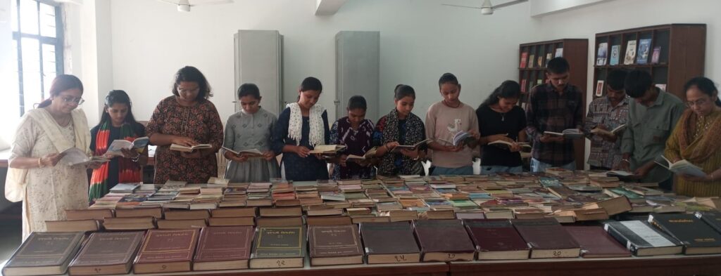Footfalls of students as well as faculty members remained in good numbers through the day. The librarians interacted with participants and encouraged students to develop a habit of reading and also take up books written in their mother-tongue. Library members also recommended notable works by distinguished authors. In fact, students showed keen interest in literature and many of them issued books for further reading.