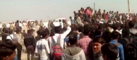 Today in Bahucharaji of Mehsana district, on getting wrong message which had gone viral on social media about job placement at Maruti Plant in Vitthalapur.