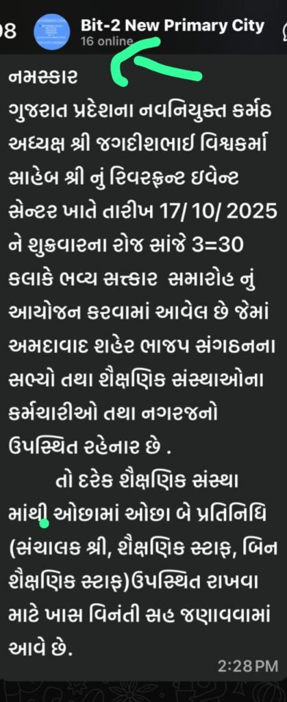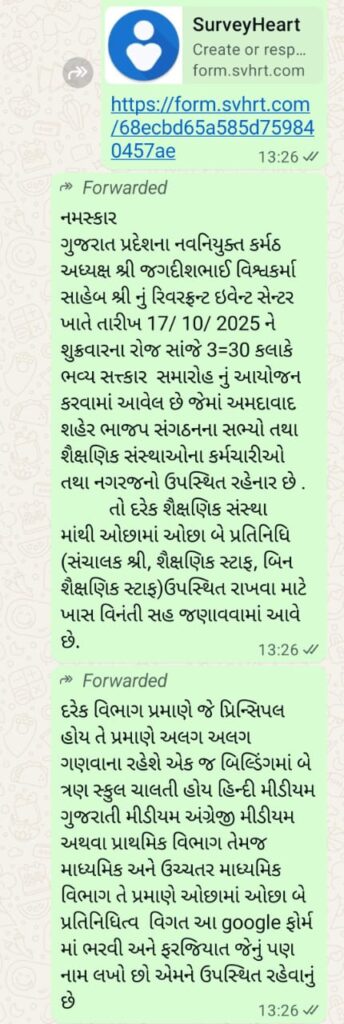 Now, as Jagdish Vishwakarma takes charge as BJP President, a welcome ceremony has been organized on October 17, 2025. City DEOs (District Education Officers) have reportedly issued directives for two teachers from every school to attend, using an official Google form.