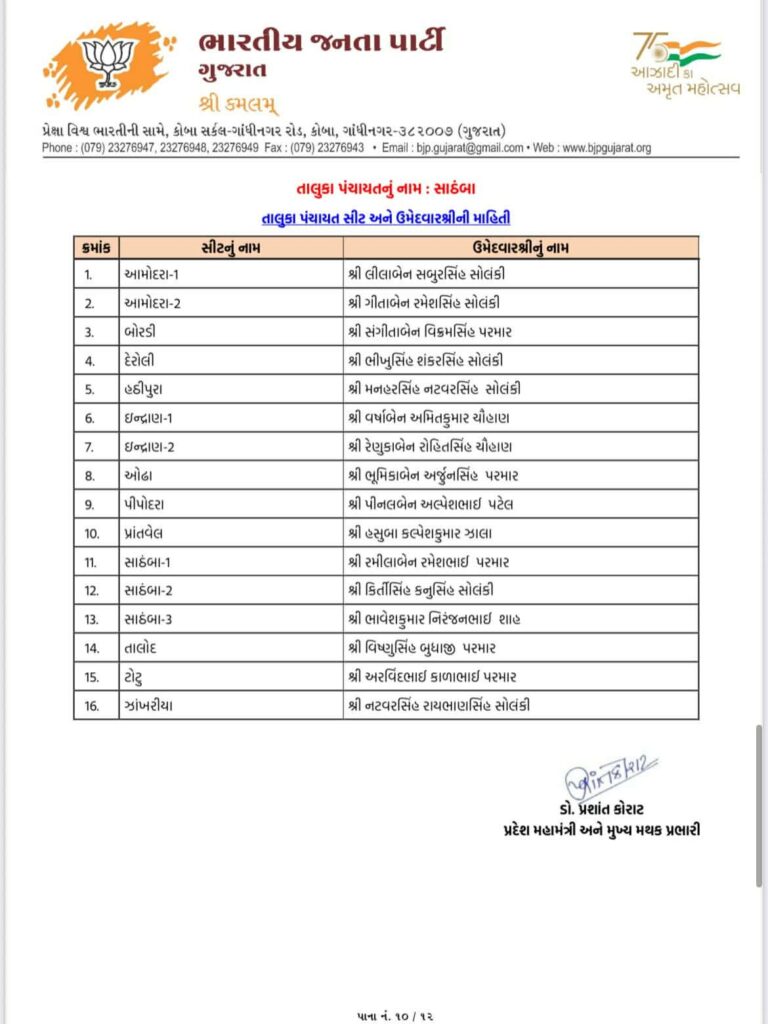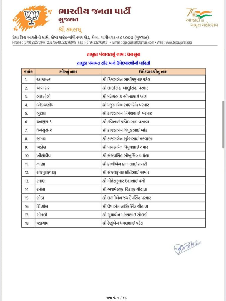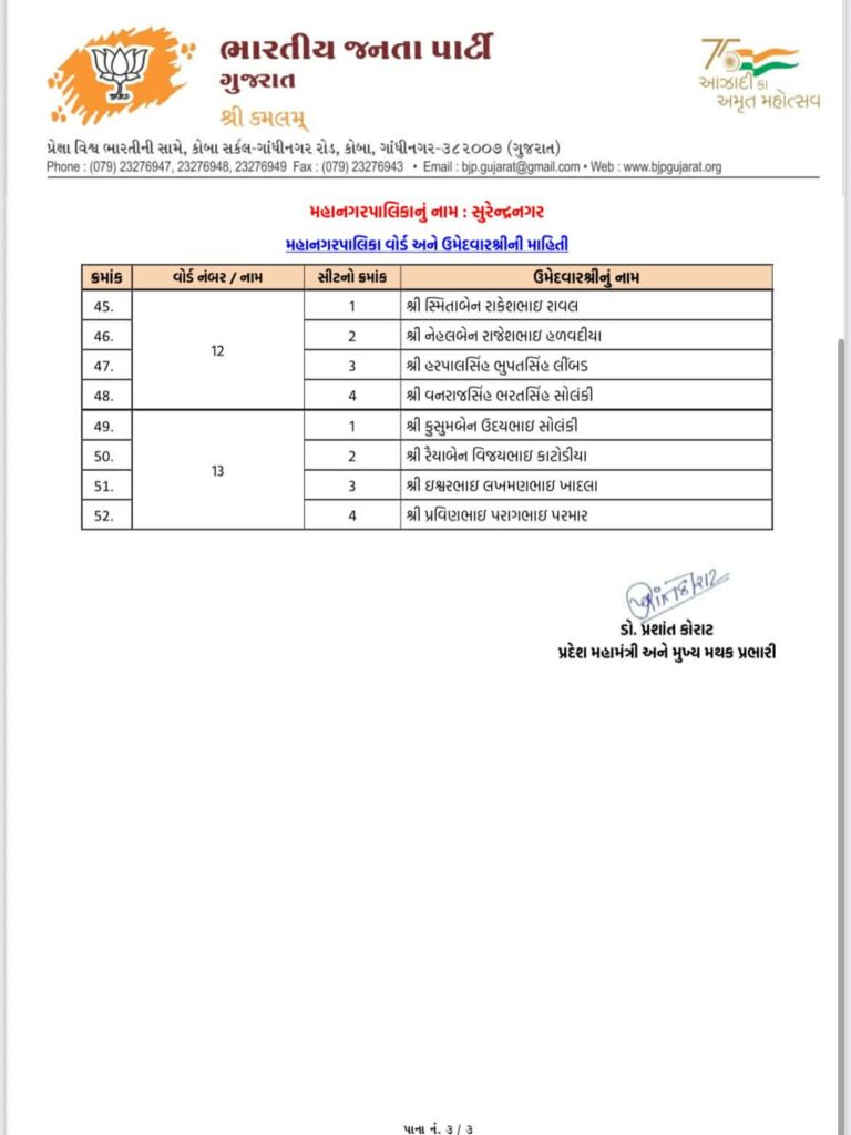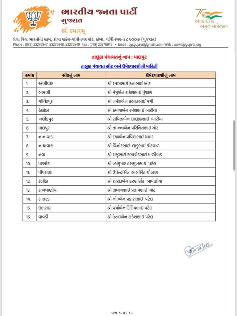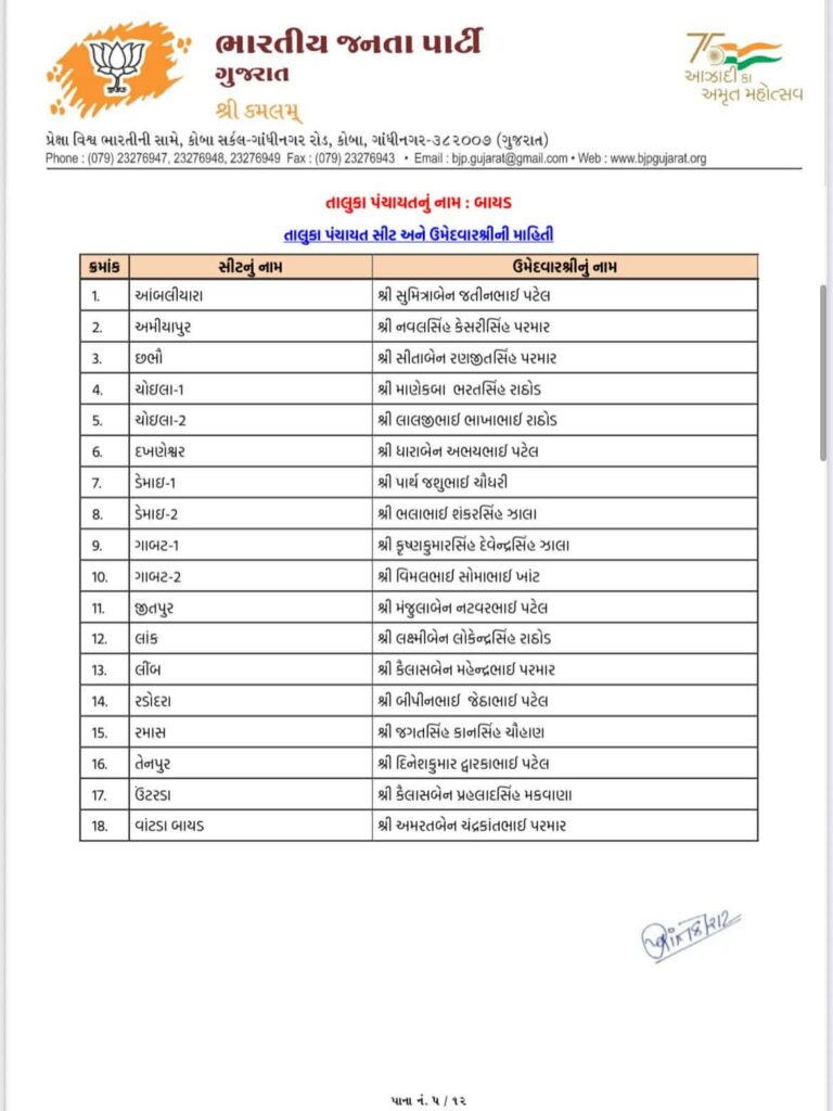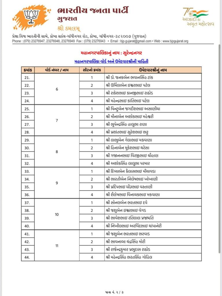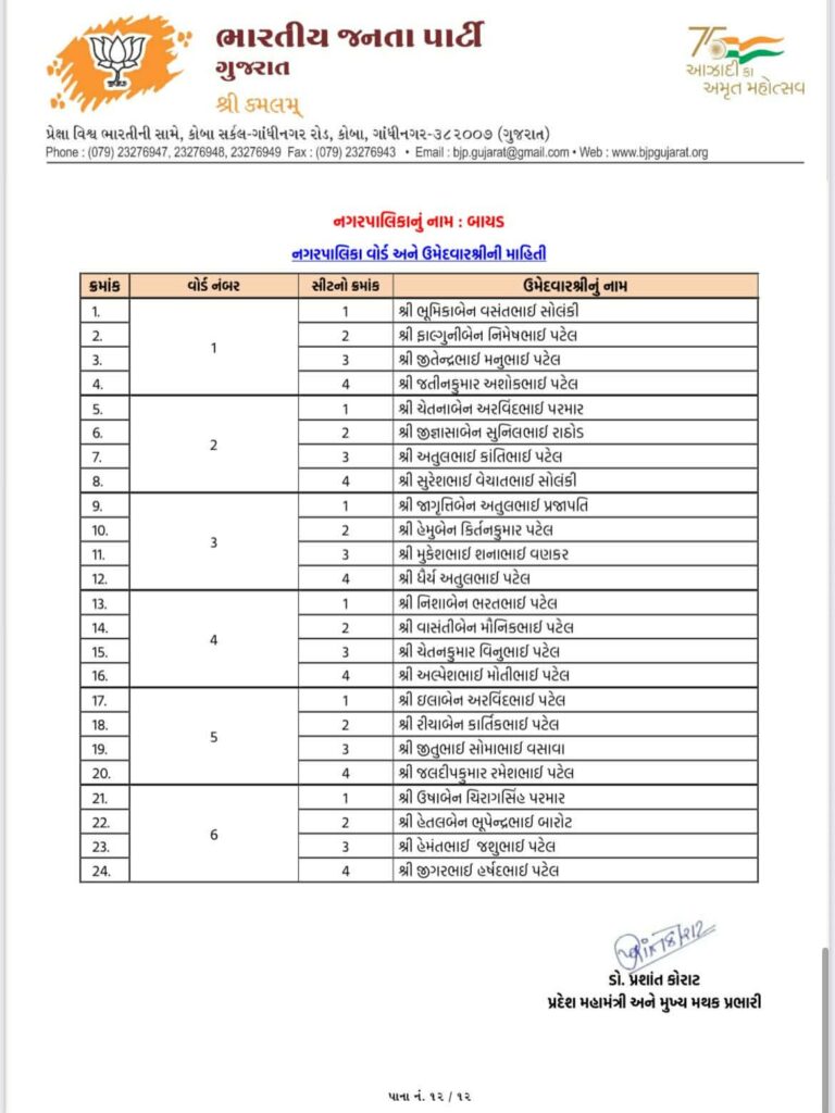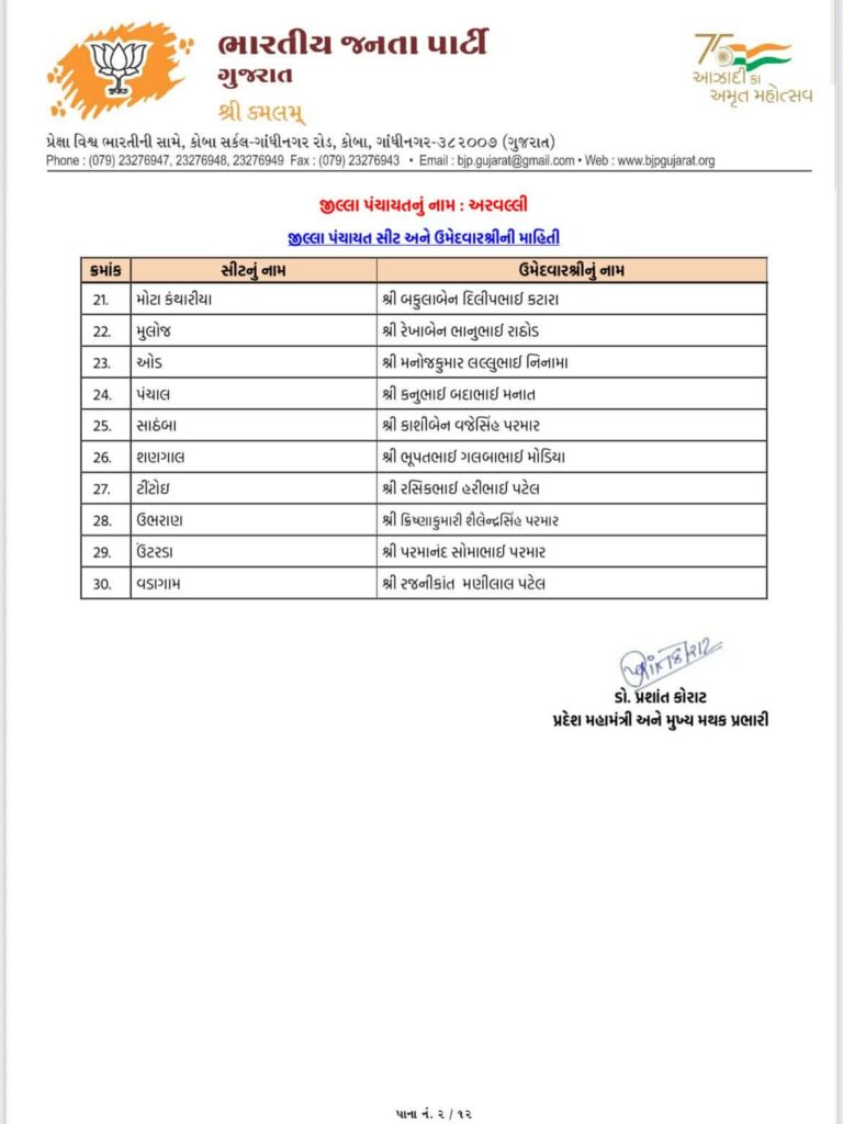 Ahead of local body elections 2026 today Gujarat BJP Bharatiya Janta Party has declared list of candidates of Aravalli Jilla Panchayat, Modasa Taluka Panchayat, Bhiloda Jilla Panchayat, Bayad Jilla Panchayat, Dhansura Jilla Panchayat, Malpur Jilla Panchayat, Meghraj Jilla Panchayat, Shamlaji Jilla Panchayat, Sathamba Jilla Panchayat, Modasa Nagar Palika, Bayad Nagar Palika and Surendranagar Maha Nagar Palika.