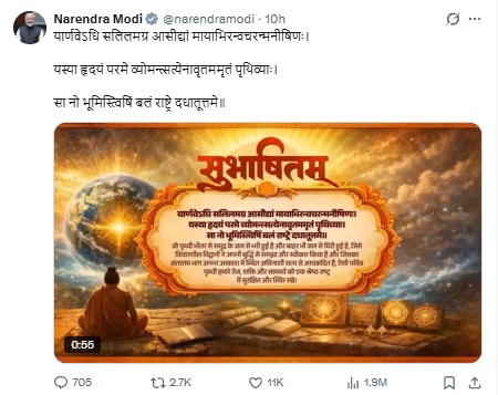 The Prime Minister, Shri Narendra Modi, shared a Sanskrit Subhashitam emphasising on sacred Earth as a source of strength to the nation: